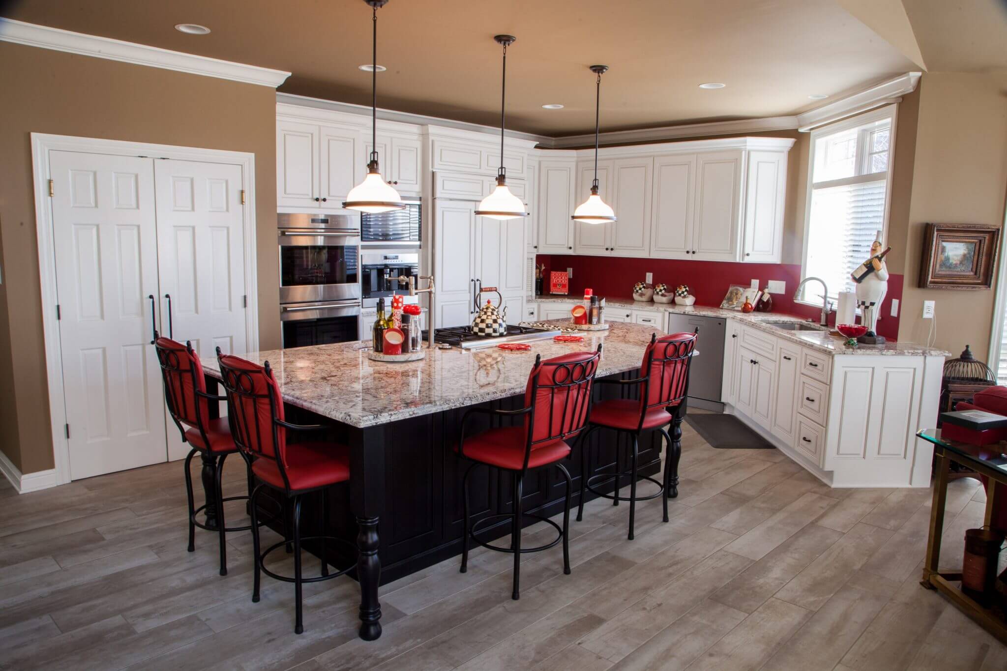 Black, Red, and White Kitchen