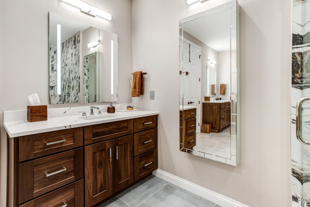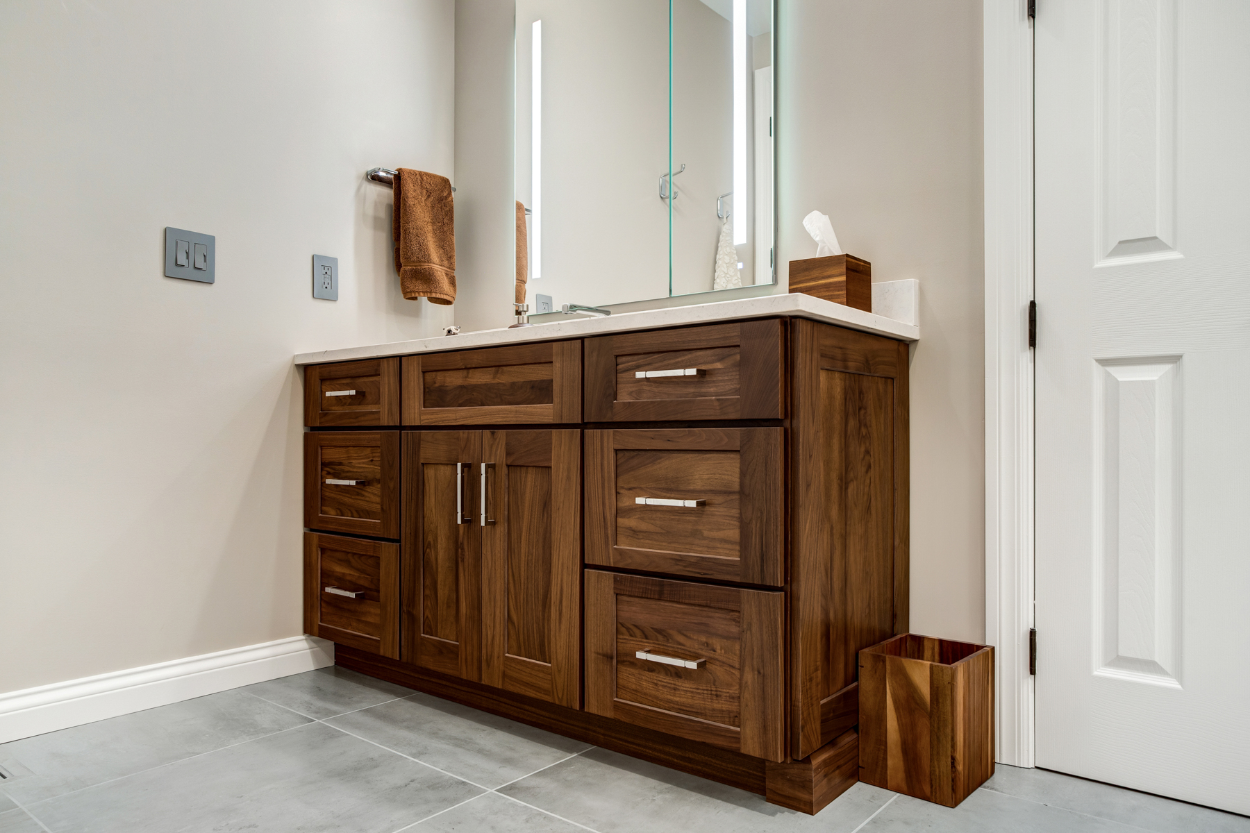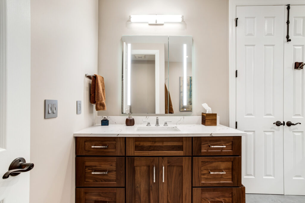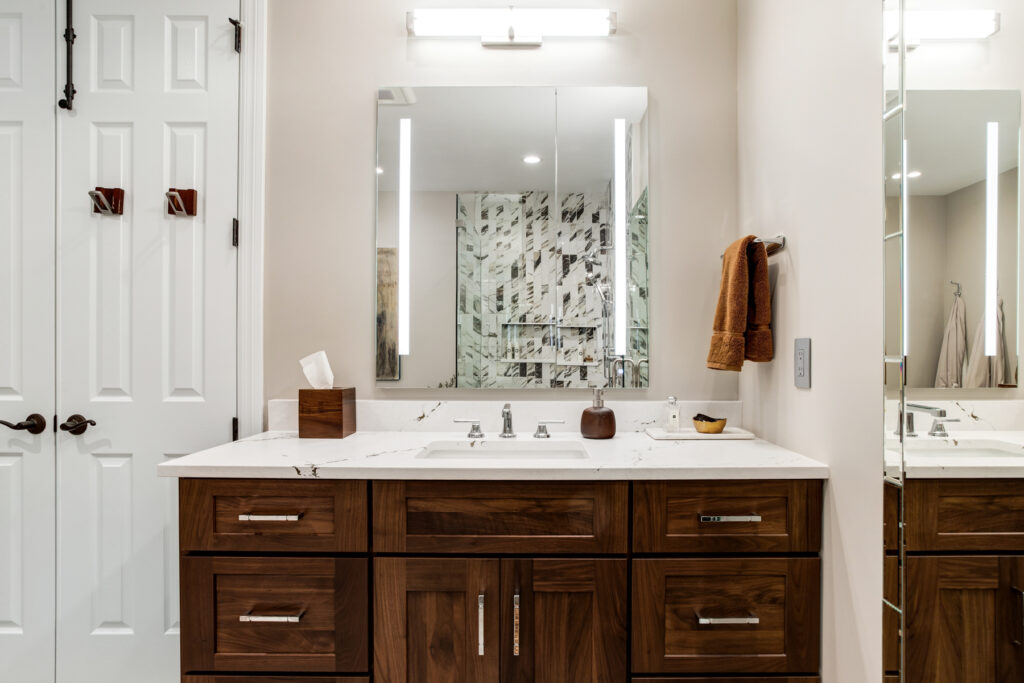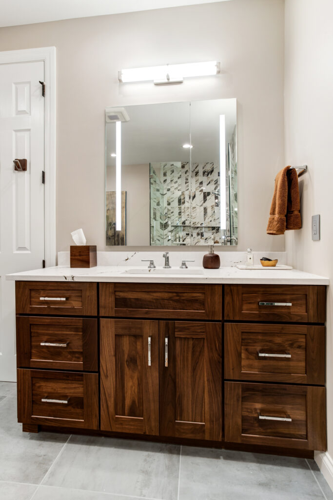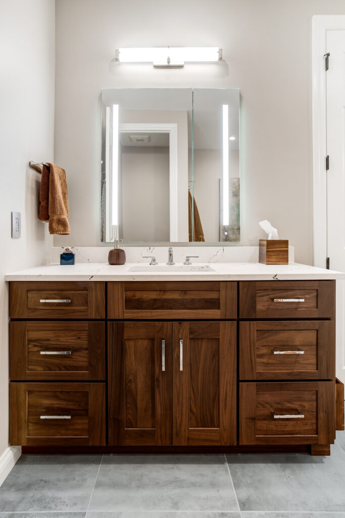 and modernized the bathroom while increasing the storage and kicking the finished up a notch.