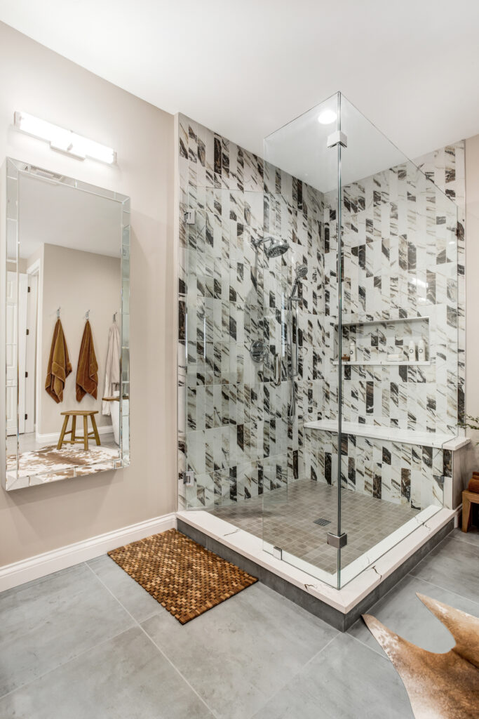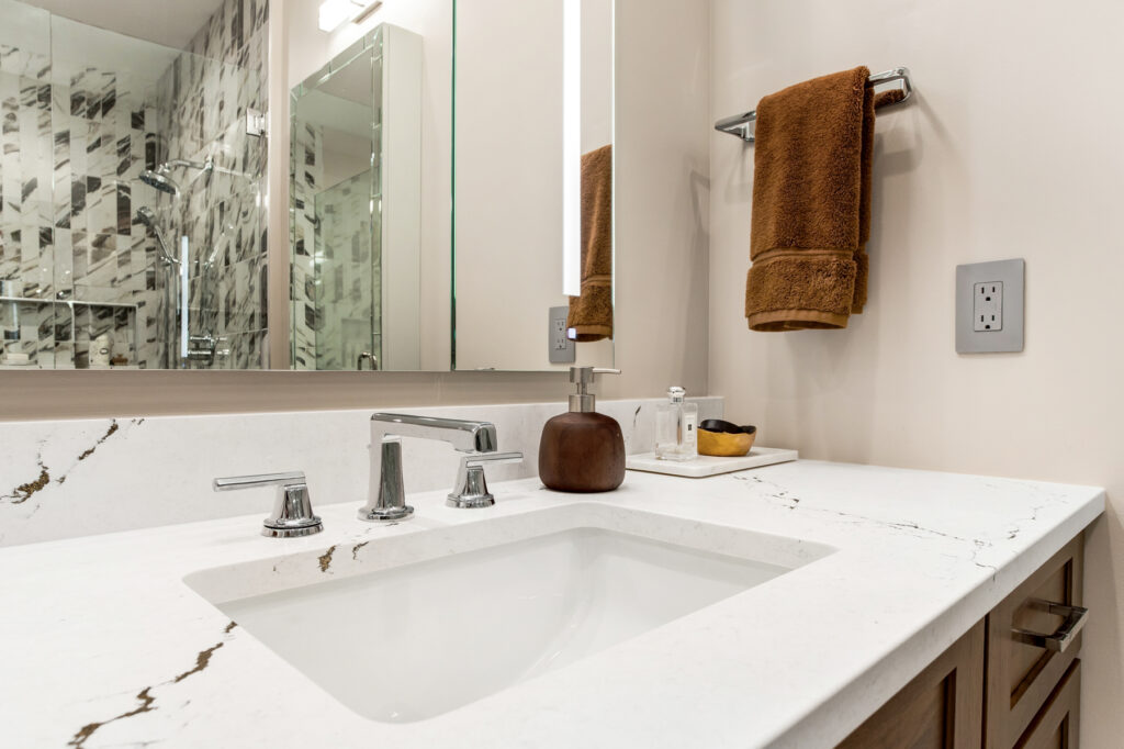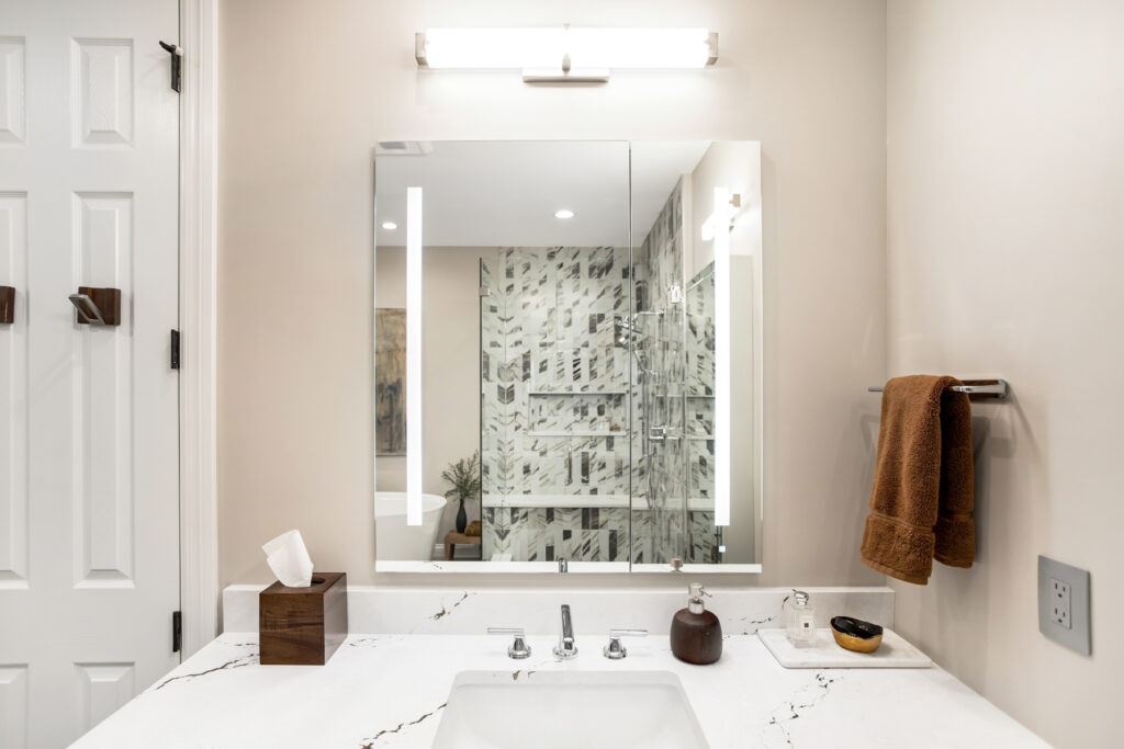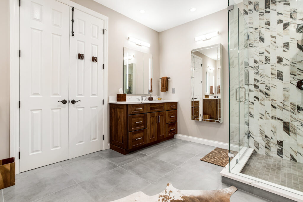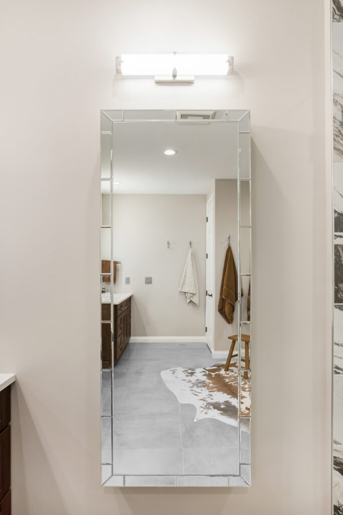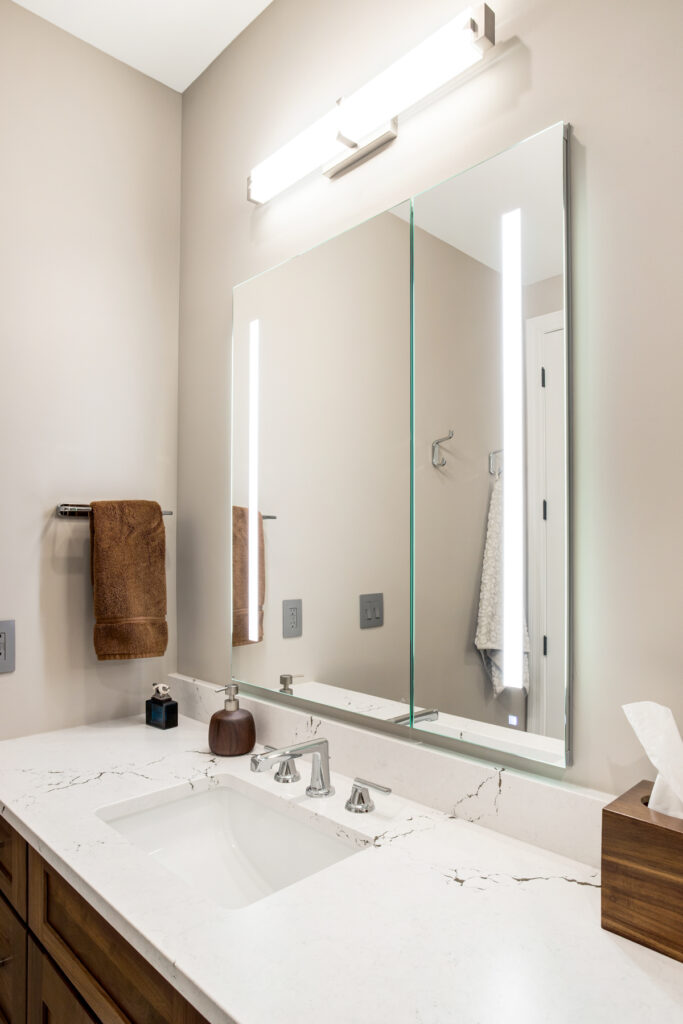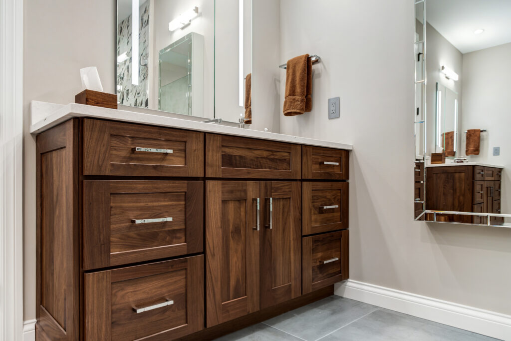and modernized the bathroom while increasing the storage and kicking the finished up a notch.